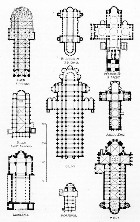 During the time, most of the churches were designed a cruciform ground plan, which is a cross-shape plan with a long nave crossed by transept, it symbolise the respect to the Christ.